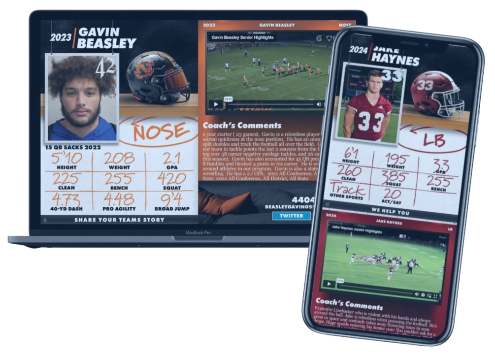 - Central hub for each recruit: video, stats, academics, contact info, and more